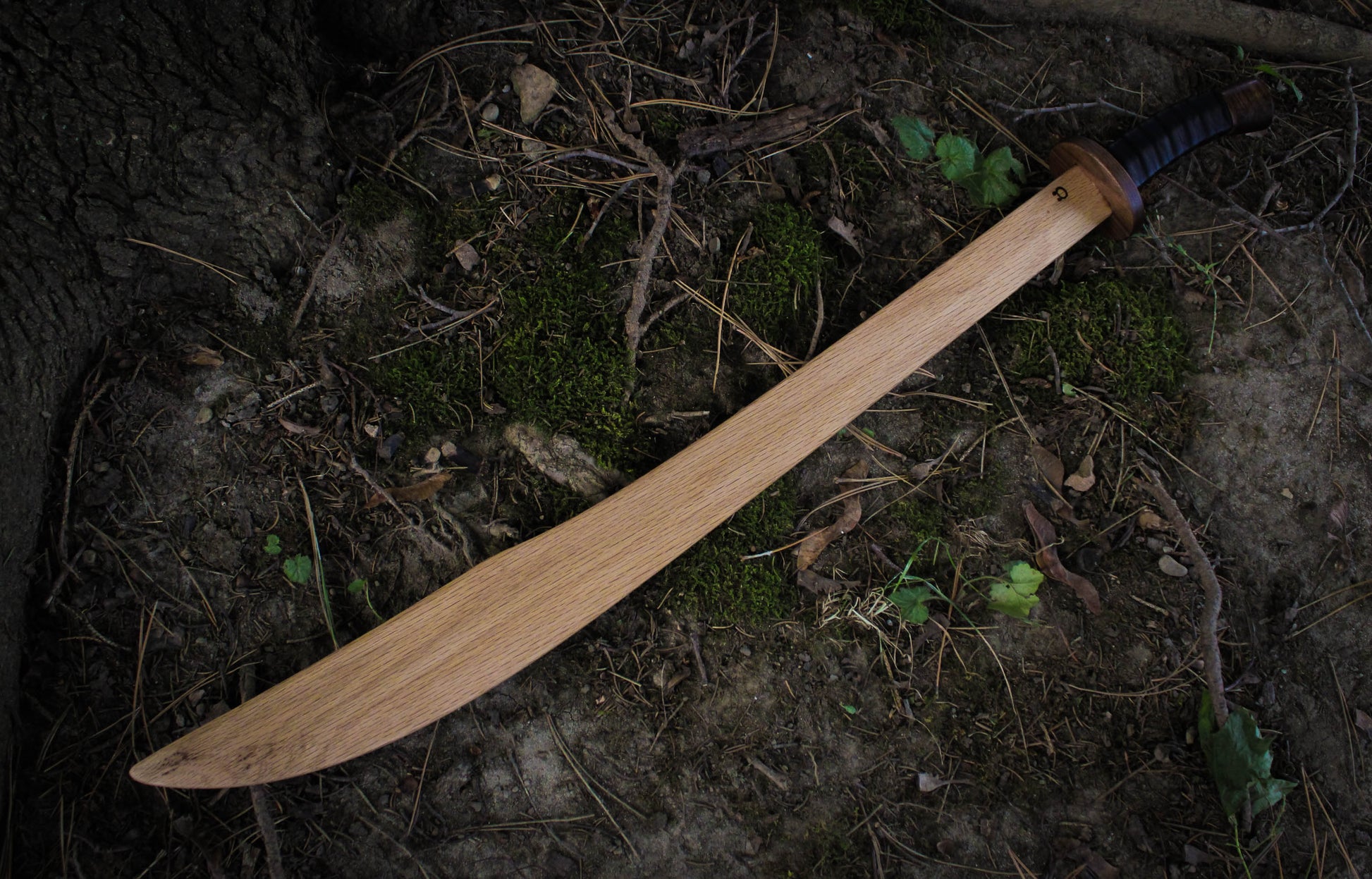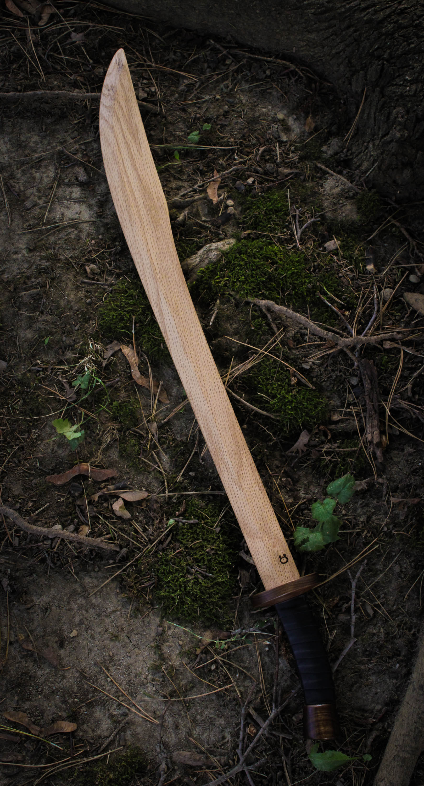 Its design is unambiguously that of a heavy cutter. Its prominent forward swell drags mass near the point, a profile made ideal for rolling slashes and sweeping gashes, paired with guards which not only deflect but also redirect.